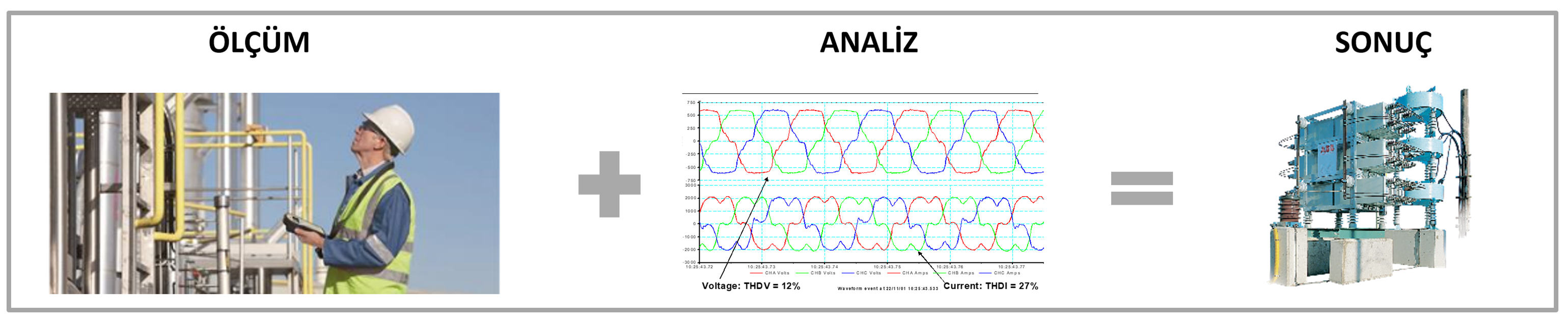 In order to see how the energy you draw from the LV / MV network and the devices you use in your system affect your system negatively and to prevent this and increase your energy quality, it is necessary to measure the harmonic level of your system and make measurement analyzes. As a result of these measurements and analyzes, after determining the problems in your system in terms of energy quality, first of all, it is necessary to find the most suitable solutions to raise your energy quality to the levels stipulated by the standards and even to raise this level to the highest levels, and the easiest and most applicable alternatives to your system to make these solutions fail. After these studies, the only thing you need to do is to choose the solution you want from these alternative solutions. The most suitable alternative solutions that our company will offer you with its long-term experience and expert staff will reduce the energy cost of your system and at the same time ensure you have a business that works without any questions.